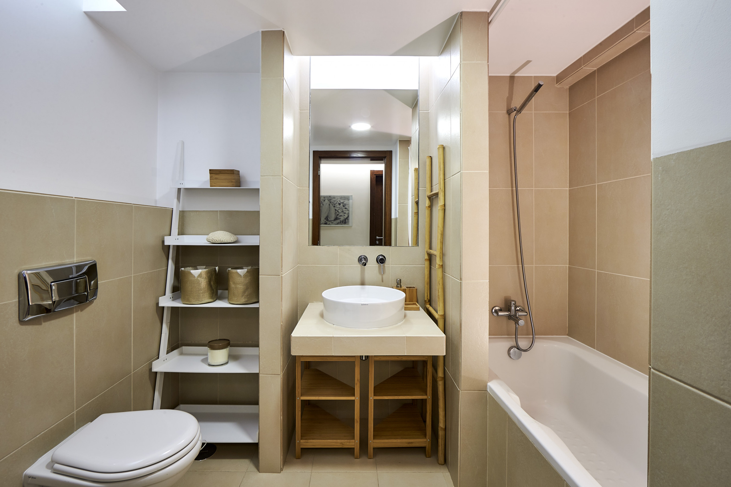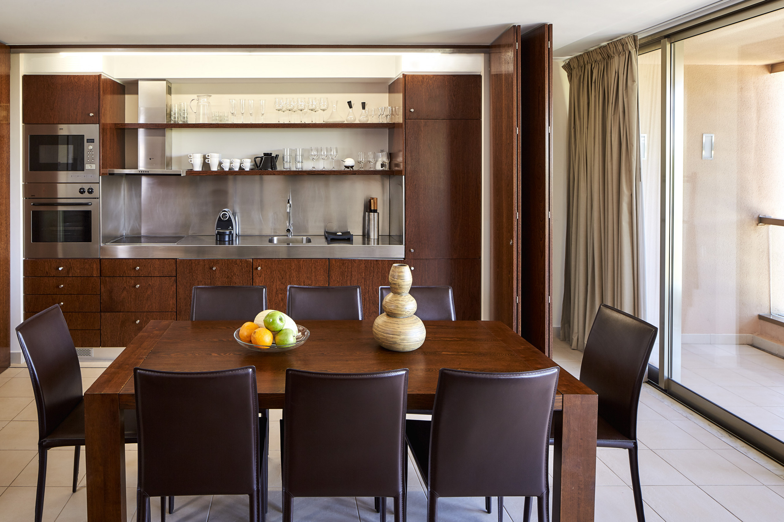 A kitchenette, de vitrocerâmica, está equipada com frigorífico, microondas, forno, congelador, máquina de lavar roupa, máquina de secar roupa, máquina de lavar louça, louça/talheres, utensílios/cozinha, cafeteira, torradeira, jarro eléctrico e máquina de sumos.