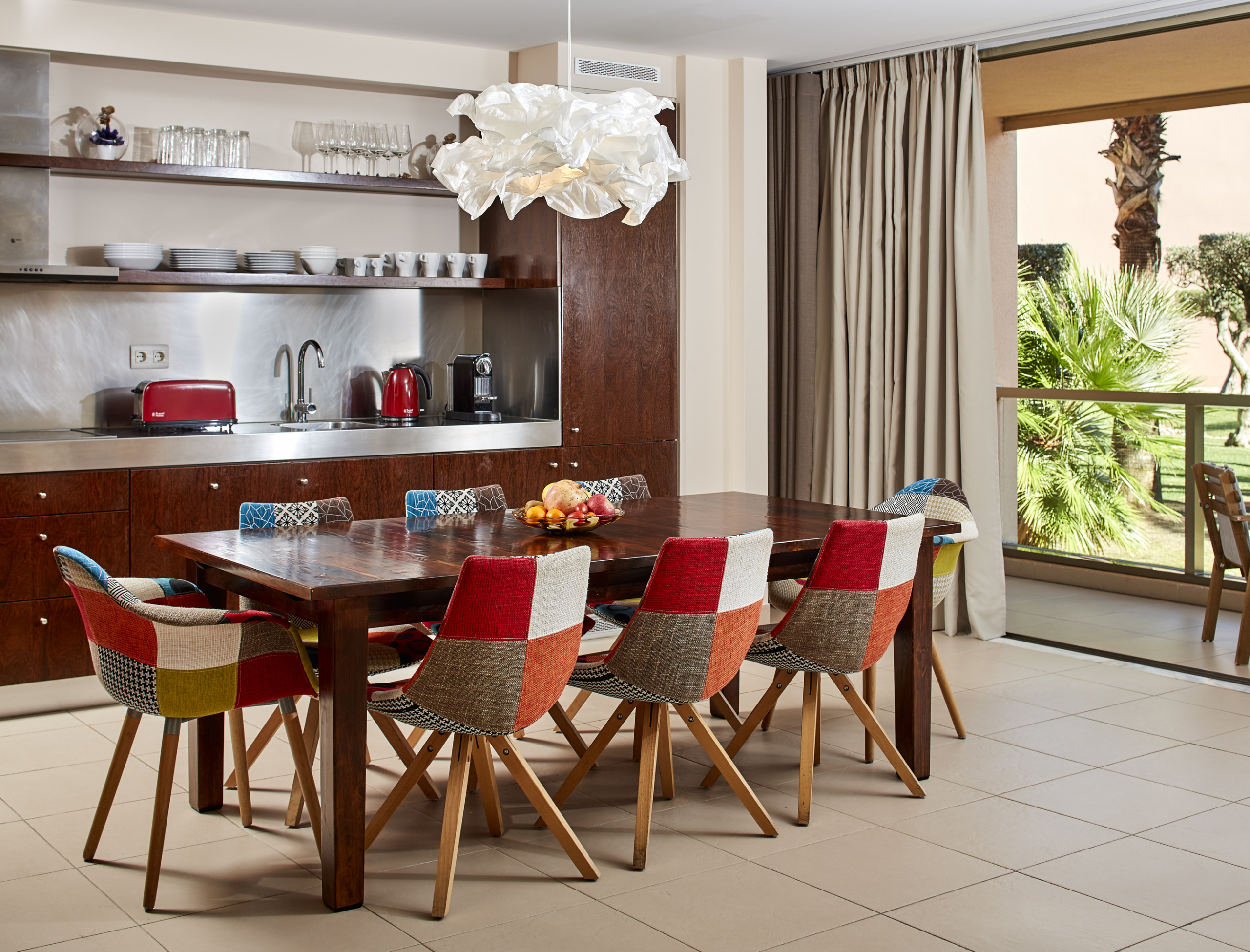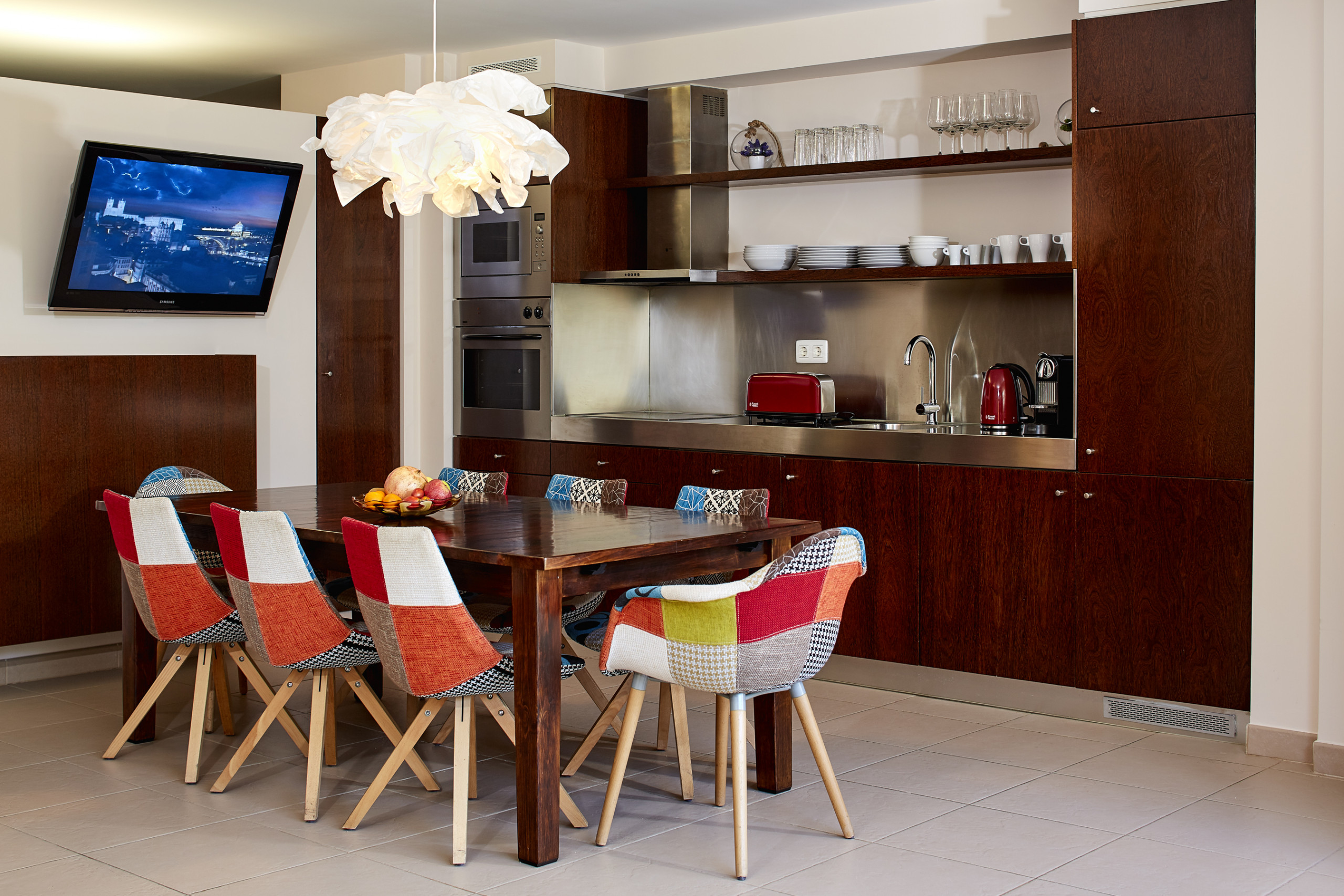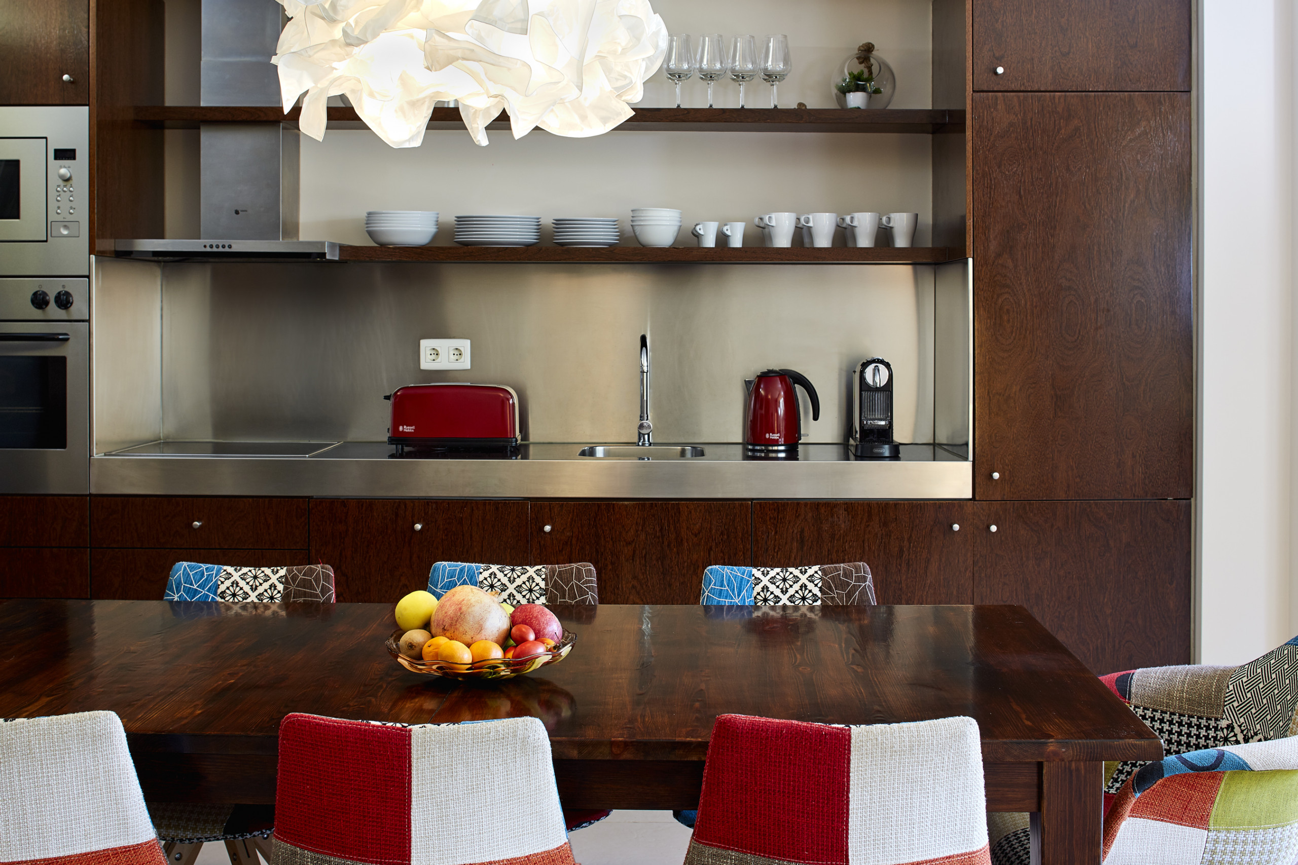 A kitchenette, de vitrocerâmica, está equipada com frigorífico, microondas, forno, congelador, máquina de lavar roupa, máquina de secar roupa, máquina de lavar louça, louça/talheres, utensílios/cozinha, cafeteira, torradeira, jarro eléctrico e máquina de sumos.